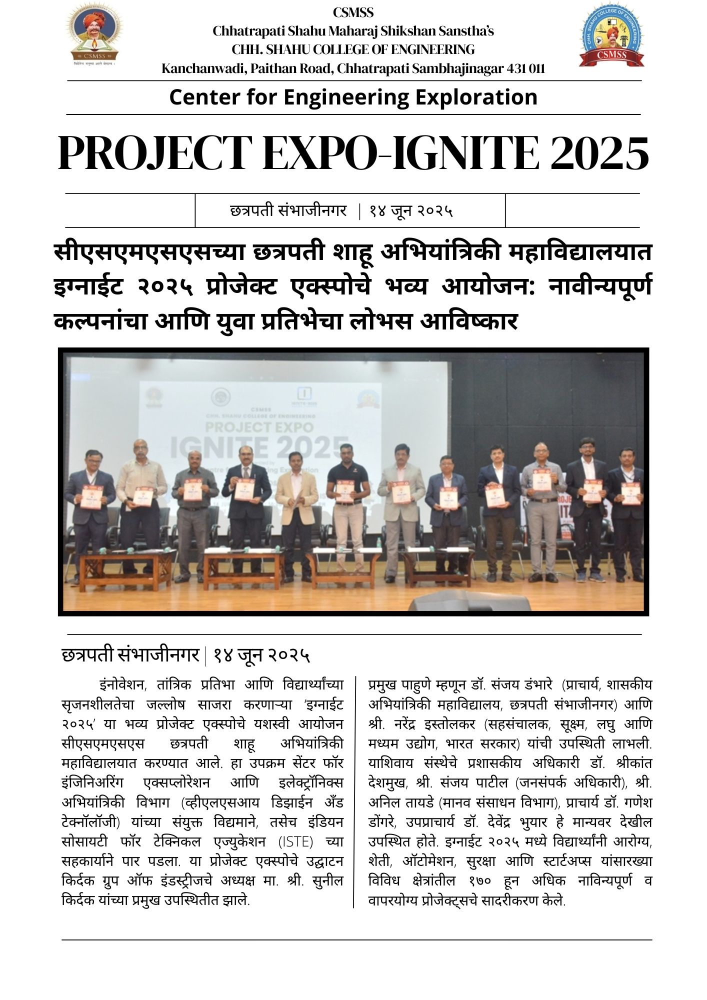 IGNITE - 2025 Project Expo Event. Date: 14-06-2025