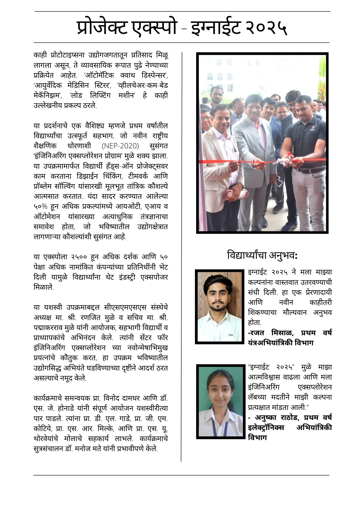 IGNITE - 2025 Project Expo Event. Date: 14-06-2025