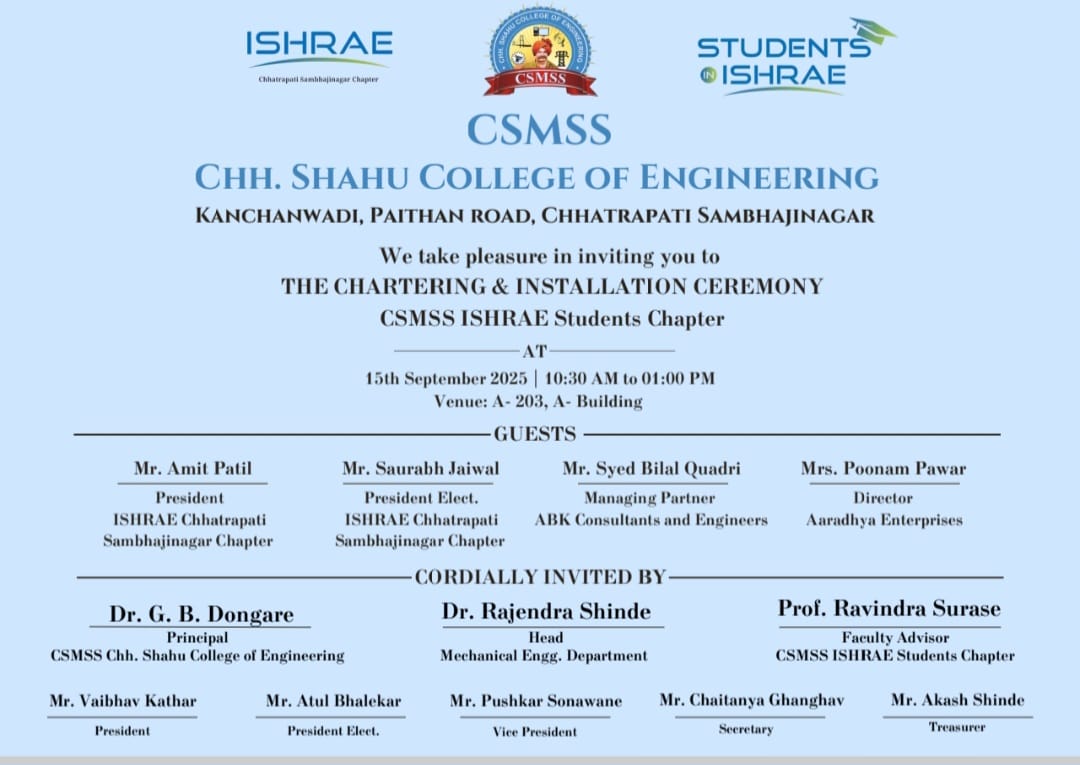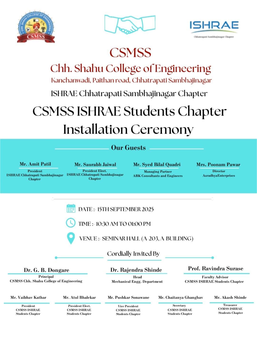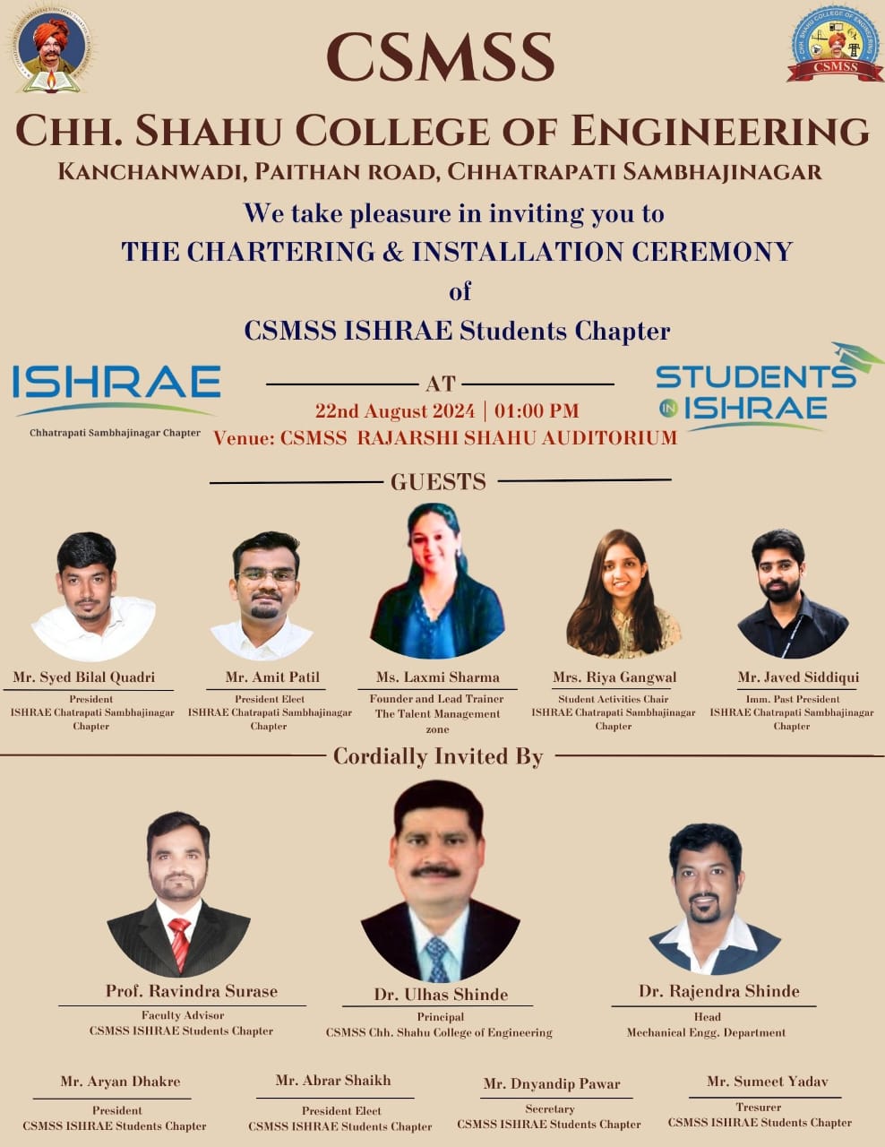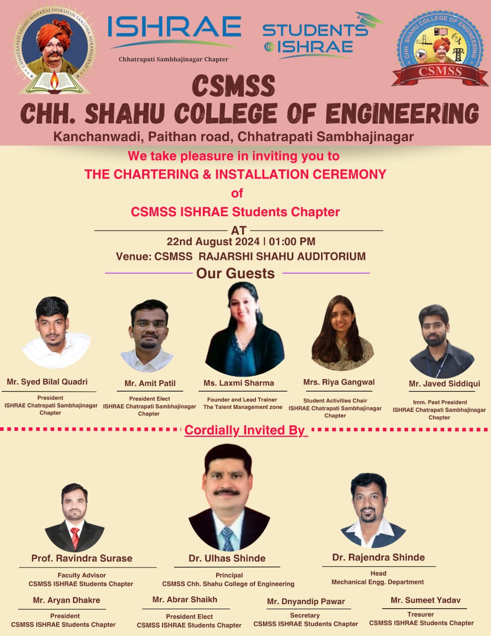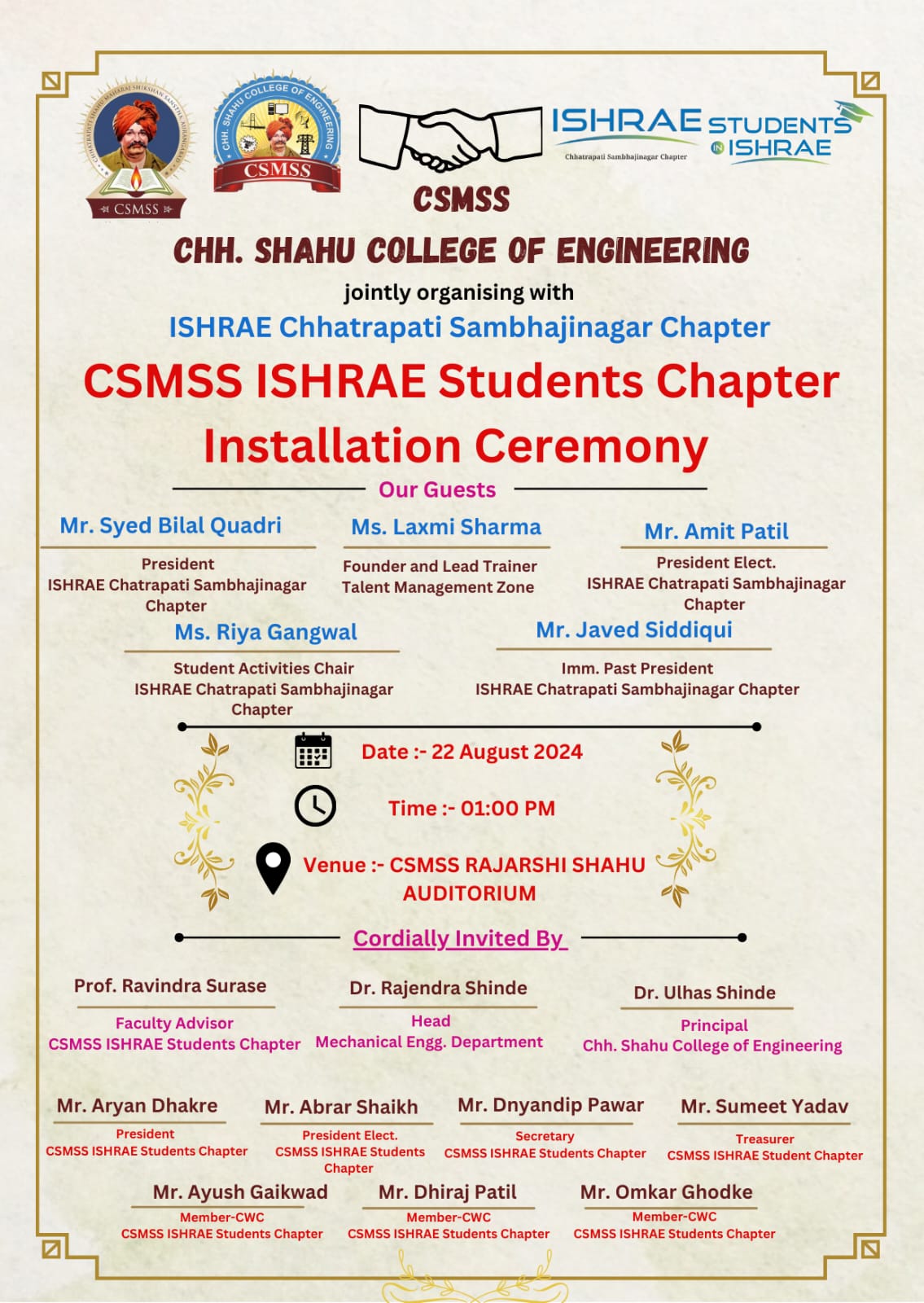 ISHRAE Student Chapter Installation . Date : 22.08.2024 |