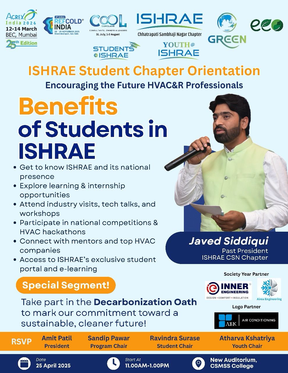 Benefits of Students in ISHRAE. Date : 26.04.2025 |