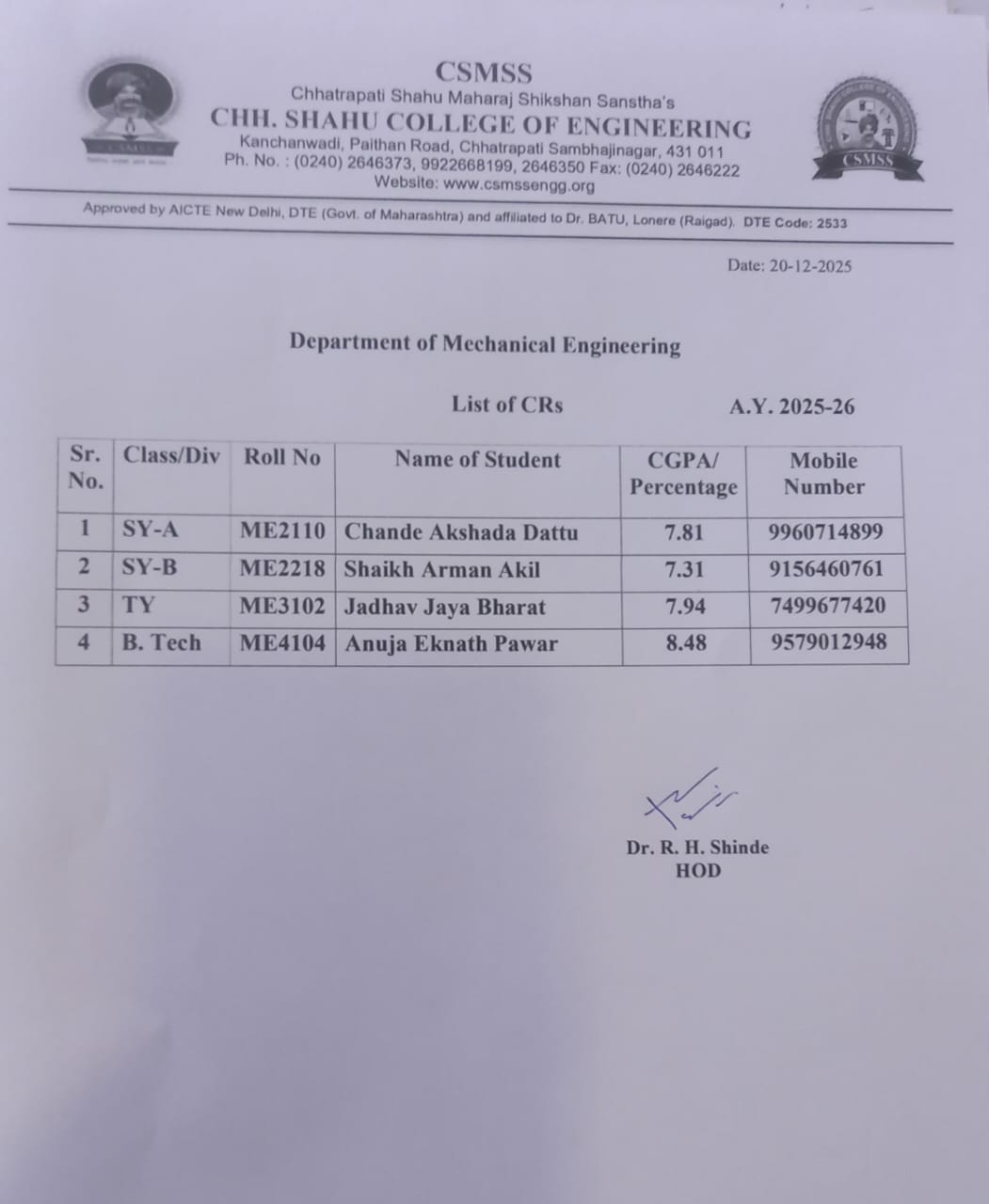 CHH. SHAHU COLLEGE OF ENGINEERING